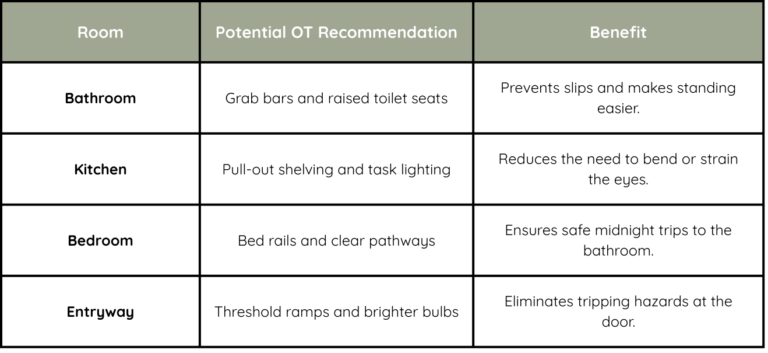 This is where the OT acts as a home detective. They look for hidden hazards that the family might have stopped noticing, such as: